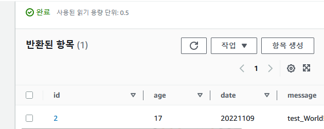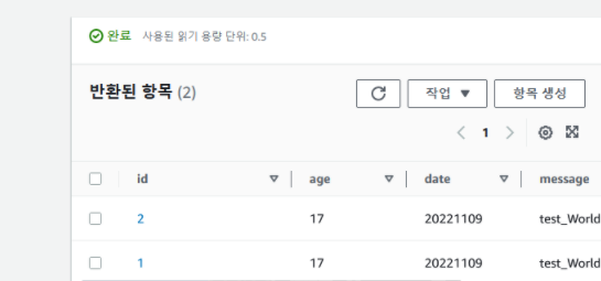 이제 dynamodb를 확인해 보았다.