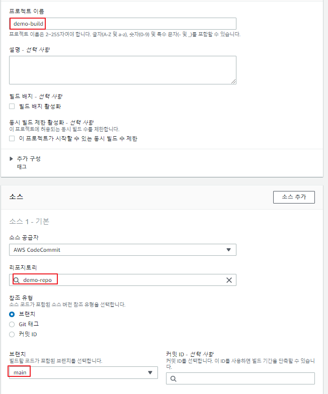 이제 codebuild의 프로젝트 빌드란에 들어가서 빌드프로젝트 생성버튼을 눌러 빌드를 생성하도록 한다.