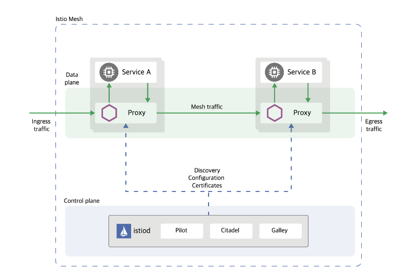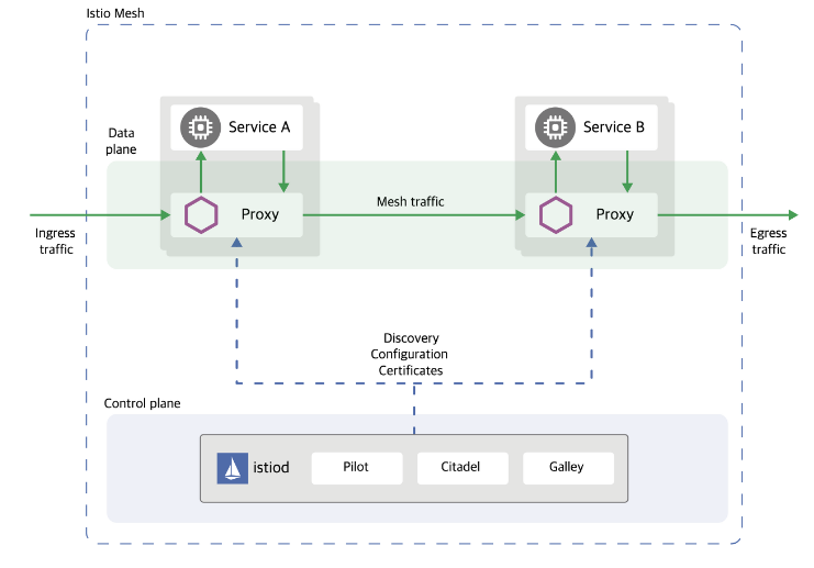 Control plane를 통해 해당 Data Plane를 컨트롤할 수 있다. Data Plane은 Service와 proxy가 위치한 곳이다.